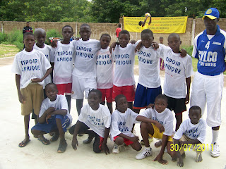 Journée d’action réussie le samedi 30/07/2011 au foyer culturel de Mokolo par le Président d’ESPOIR AFRIQUE en présence des autorités locales (Sous-préfet , Maire , Commandant de la Gendarmerie , Commissaire de Police, Délégué de la Jeunesse et Sports ,etc…). L’association pour le développement des Jeunes de Mokolo ( ADJM) a reçu de notre part 5 unités centrales , claviers et souris . Des nombreux enfants ont bénéficié des fournitures scolaires ( cahiers , stylos à bille ) . De plus, l’association sportive locale dénommée Tsanaga Volley-ball Club (TVC) s’est vu octroyée une trentaine de ballons de volley-ball ,un filet et 4 jeux de maillots . Des photos sont dans la rubrique » Albums photos » . Merci à tous les donateurs